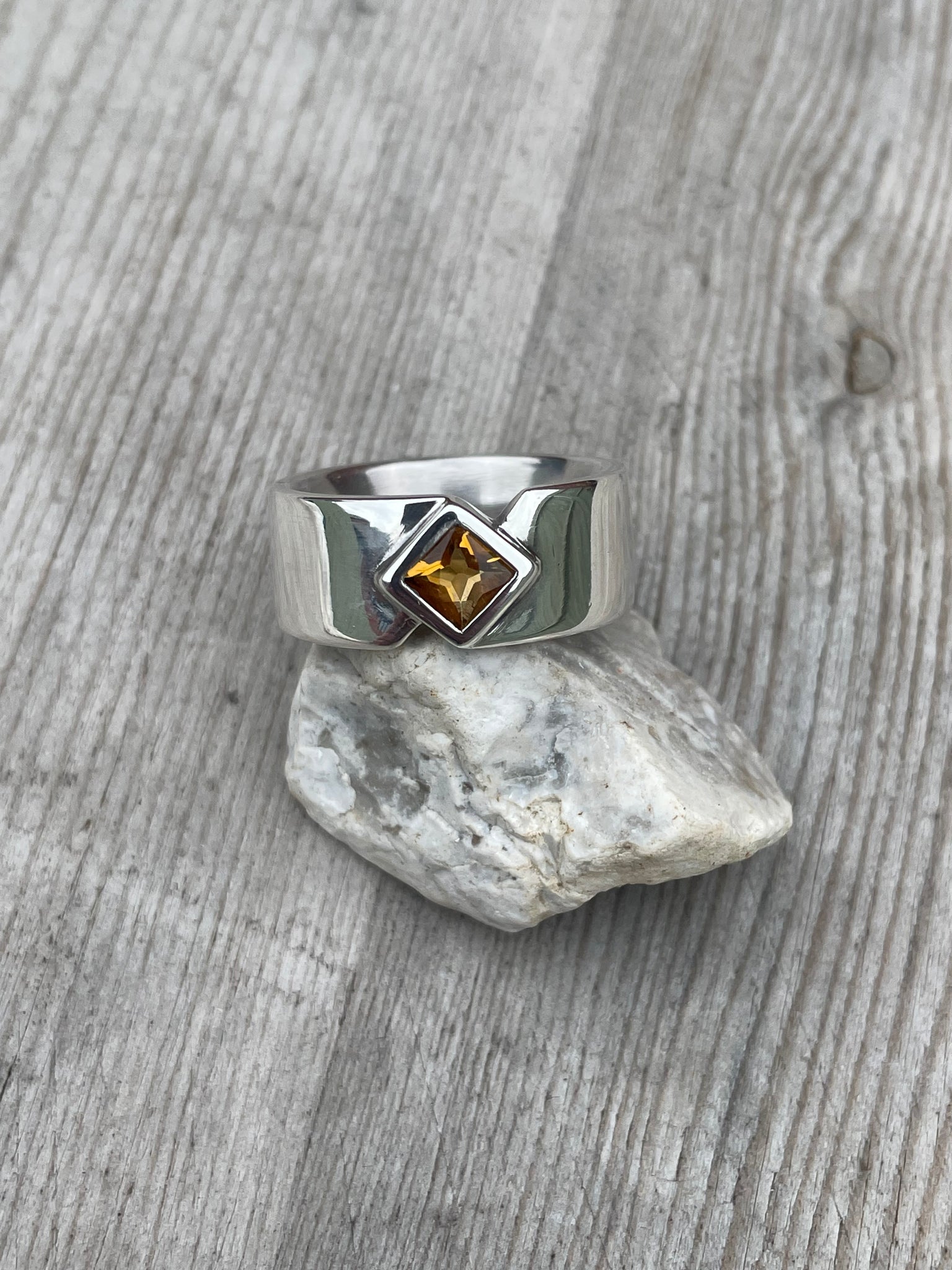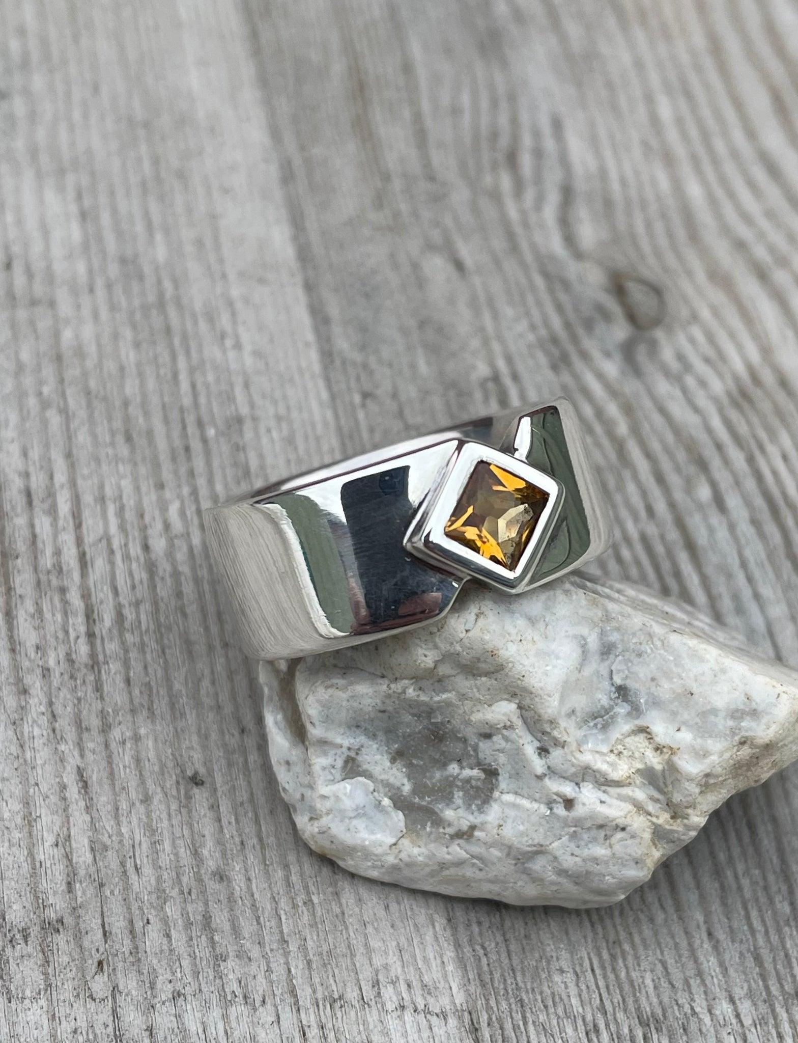 This big bold Sterling silver ring can be worn by anyone. Featuring beautiful Citrine it will turn heads